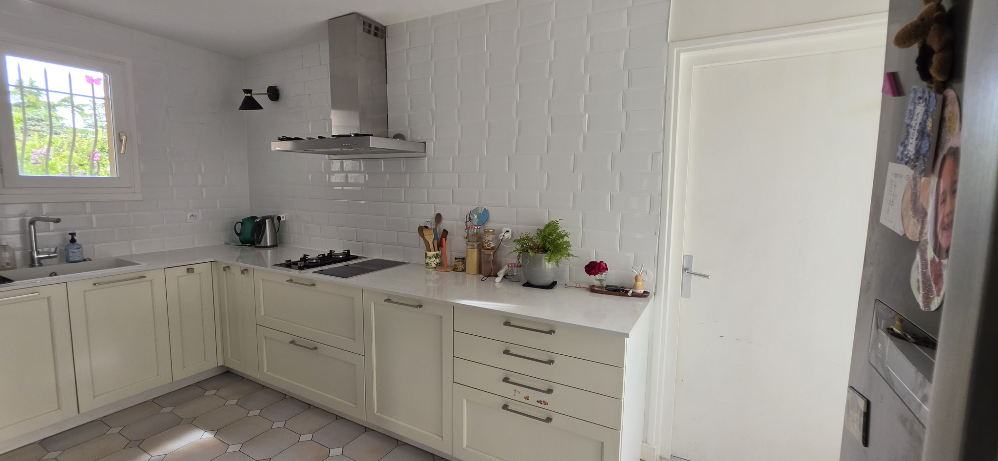 À l’extérieur, le terrain, entièrement clos, offre un cadre verdoyant et une vue dégagée sur l’Ouest, idéal pour profiter des fins de journée en toute sérénité.
