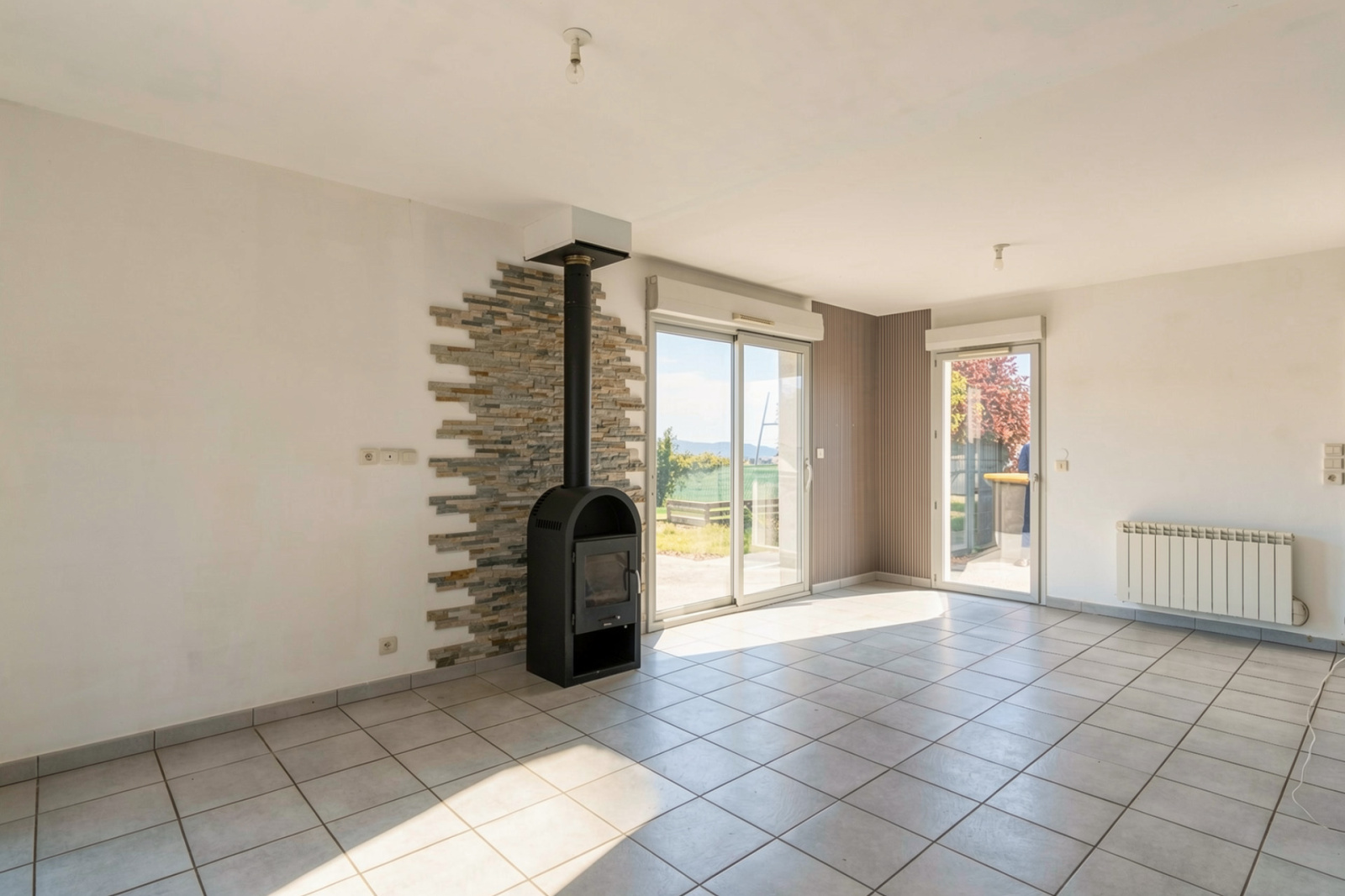 Chauffage par radiateur électrique et poêle à bois. Ballon électrique pour l'eau chaude.