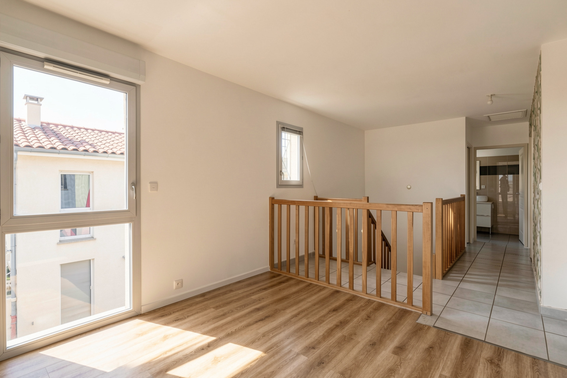 À l’étage, l’espace nuit propose trois chambres, un bureau, une salle d'eau ainsi qu’un second WC.