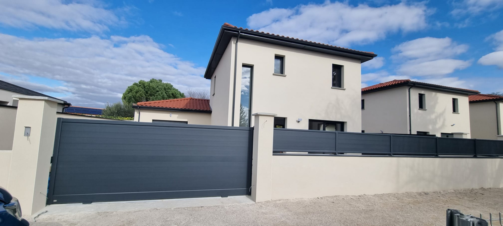 Portail et porte de garage motorisés. Volets roulants électriques. Chauffage PAC.