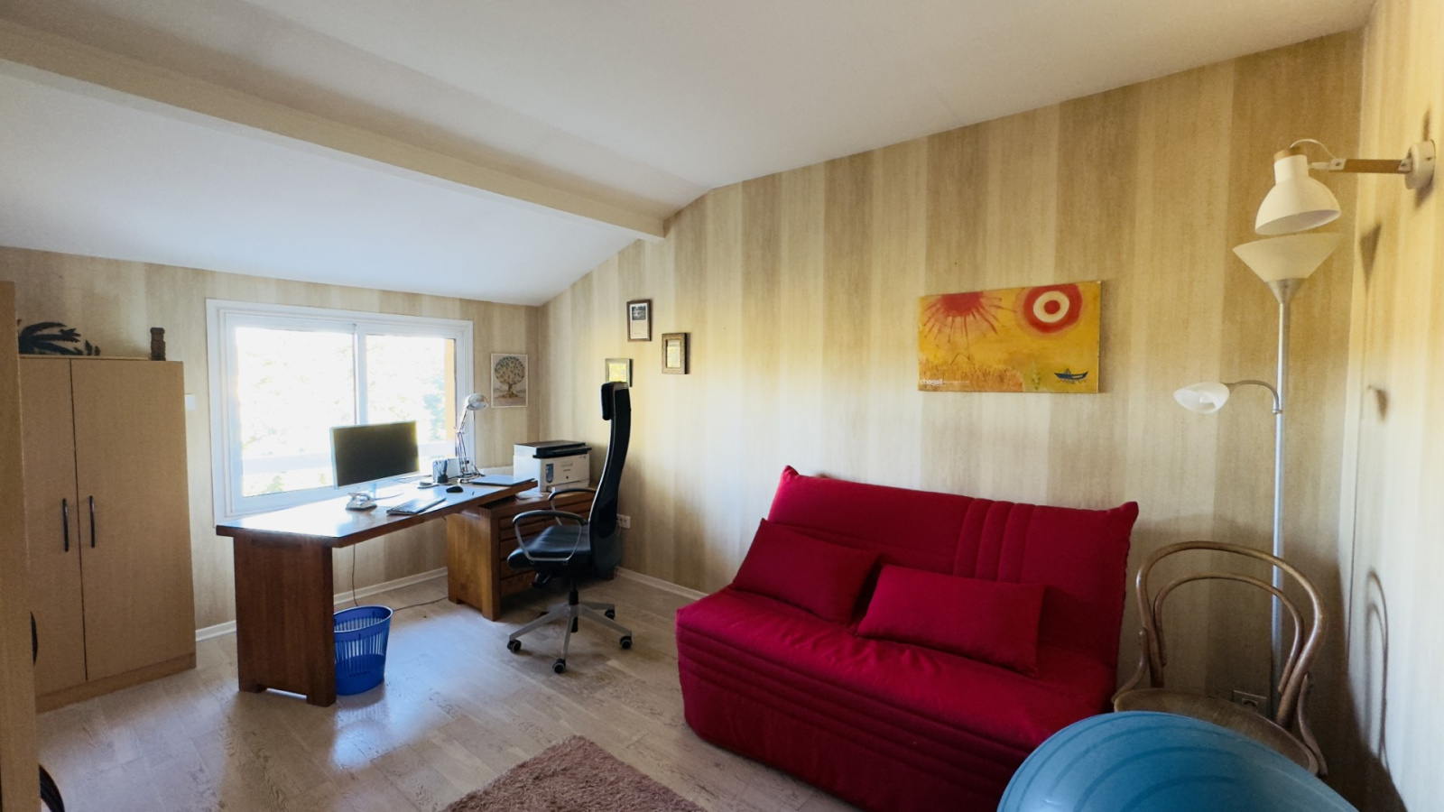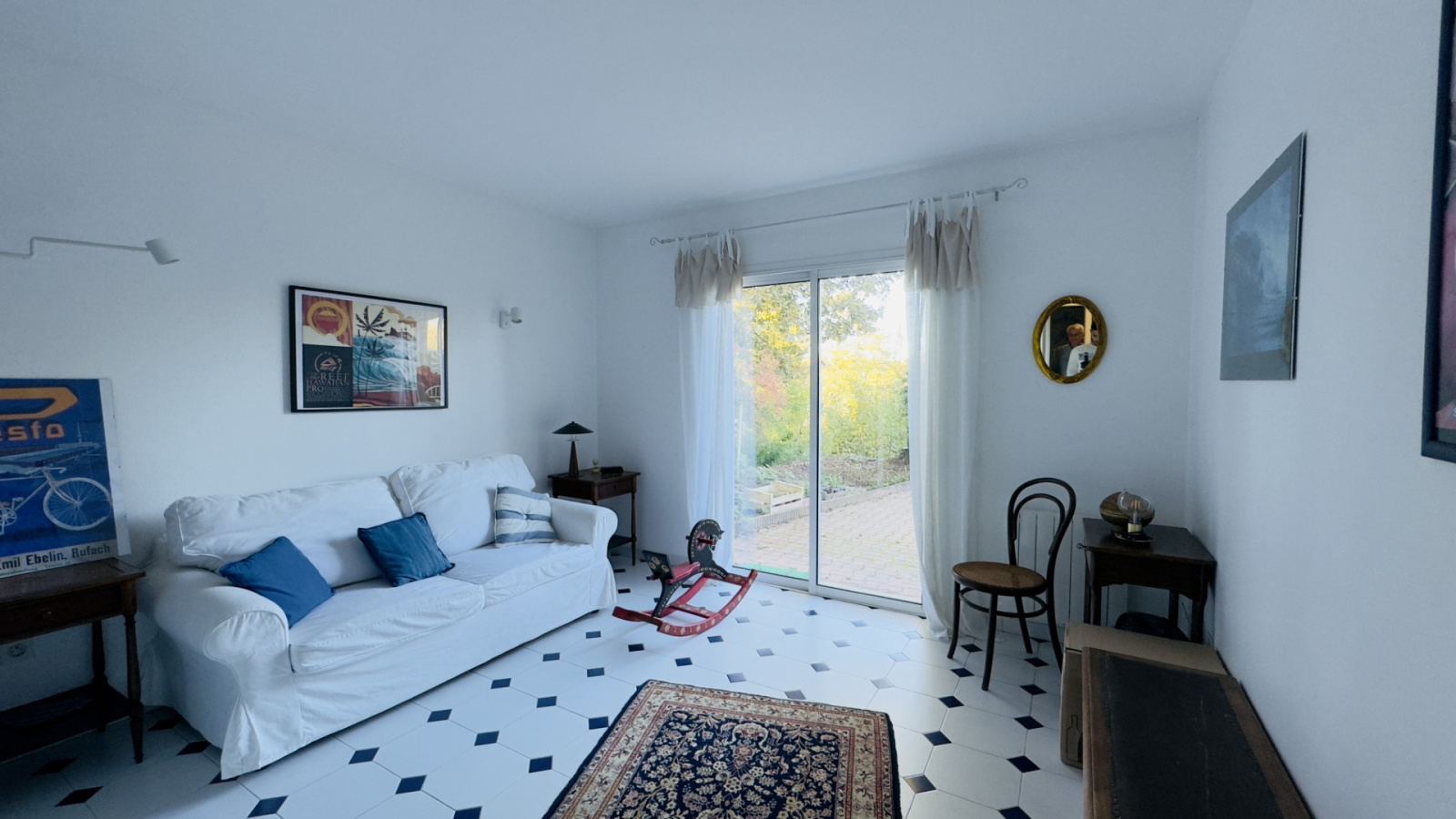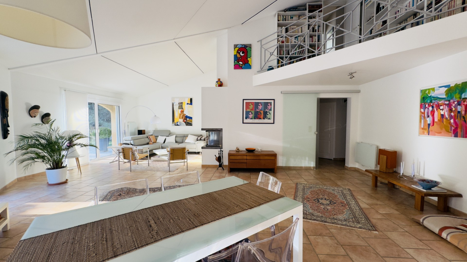 Chauffage au sol, cumulus pour l'eau chaude et cheminée avec insert. Huisseries aluminium double vitrage.